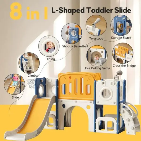 📞【Worry-Free Purchase Assurance】 – Designed for versatile indoor and outdoor fun, our toddler indoor playground is effortless to assemble, requiring no extra tools. With elevated guardrails for enhanced safety, we back our product with a commitment to customer satisfaction, including free returns. Your package includes a slide, basketball, hoop, telescope, and user manual, supported by our 24×7 customer service.