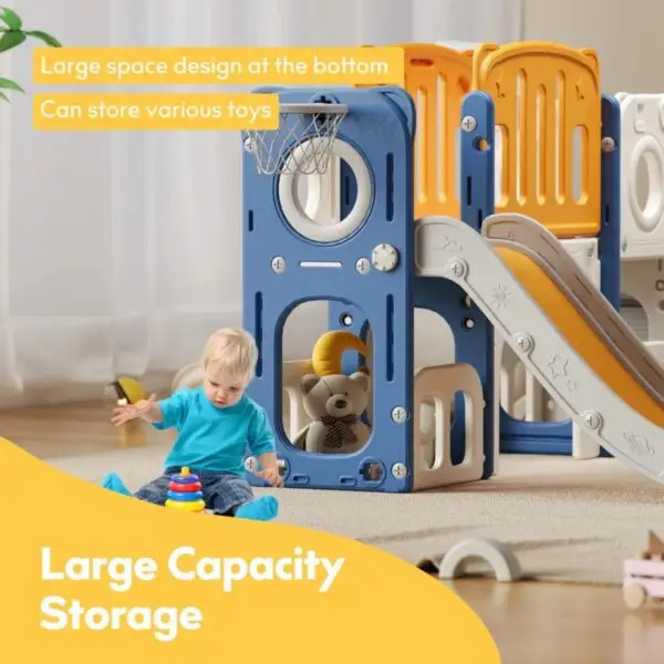 Baotre 8 in 1 Toddler Slide,Kids Slide Playset for Toddler,Indoor Outdoor Slide Toddler Playset with Ball & Hoop, Storage Space and Non-Slip Steps,Gift for Boys and Girls 1-3 Years (Blue Orange)