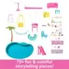 Kids can host the ultimate pool party with the Barbie® Dreamhouse™! This deluxe doll house has the tallest slide in the Barbie® Dreamhouse™ series to date, with a three-story spiral design for endless fun in the sun. It inspires 360-degree play with a wide and spacious floorplan, three levels, and 10 indoor and outdoor living areas. The playset also features more pet-friendly touches than ever before, including a puppy slide and pool where furry friends can play along with Barbie® doll! Plus, the top floor bonus room wows with a sleepover transformation that allows the Dreamhouse™ to sleep four dolls. With 75+ accessories and customizable spaces that double the fun, it makes an exceptional gift for kids ages 3 years old and up. Assembly required. Dolls not included. Colors and decorations may vary.