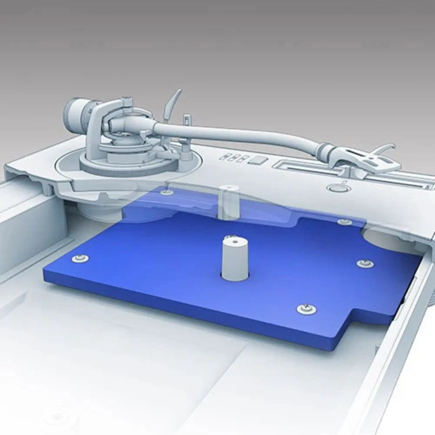 The PLX-1000’s heavy-mass, die-cast zinc chassis prevents resonance and vibrations. The lower part of the unit is reinforced with 8mm-thick resin, plus 9mm-thick, vibration-damping material at the base. Plus the rubber-insulated tone arm reduces howling effects, while rubber and springs on the dampening parts of the insulator absorb external vibrations.