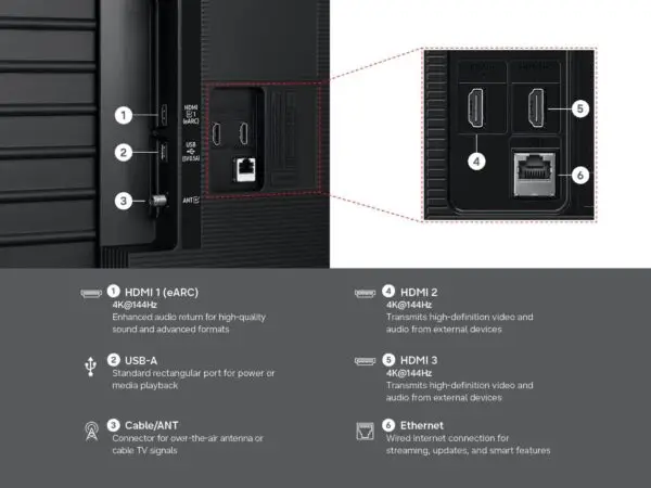 Experience every shade of color as it was meant to be seen in dazzling 4K. Plus, make your movies, TV shows, games and sports look even better with powerful 4K upscaling. Watch 2,700+ free streaming options, including 750+ subscription-free channels on Samsung TV Plus. Enjoy news, sports, movies, kids’ shows and reality TV — all without a subscription. Discover endless entertainment with new content added regularly, tailored to your mood and interests.3 Enjoy smooth visuals and fast motion clarity with technology that analyzes and optimizes the refresh rate.4 Designed for gaming and sports to keep every scene sharp and fluid. Enjoy seamless action and responsive performance that elevates your viewing experience. A central hub that brings together your favorite games from your consoles, cloud services and gaming apps, all in one place. It also offers personalized recommendations so you can easily find what to play next.5 Enjoy a stadium-like experience from your living room. Optimized settings ensure you see every pass, shot, and goal in stunning detail. Specialized settings deliver 40% clearer motion7 for fast action and 30% more vibrant greens for realistic turf, putting you right in the stadium.