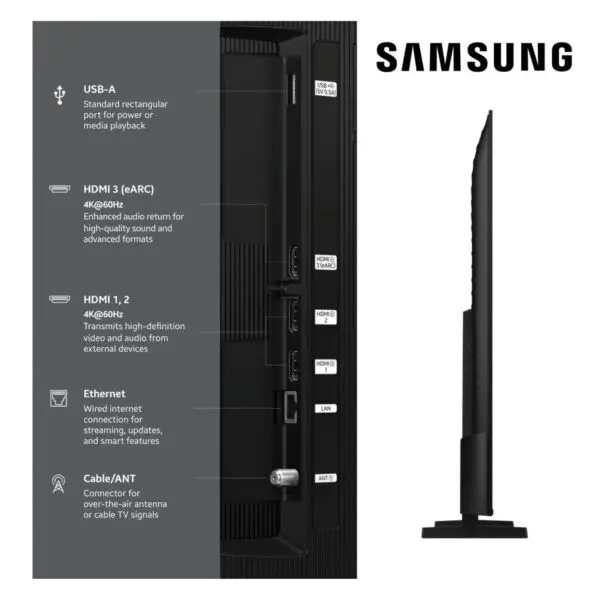 Enjoy your movies and shows in stunning 4K, regardless of the source resolution. Plus, get the most out of what you’re watching with AI-optimized color-boosted picture and audio quality, enhanced according to the type of content.². Appreciate every beautiful shade of color with incredible precision. The nano-sized Quantum Dots can display the entire color spectrum,³ so you can admire billions of shades at any brightness level.